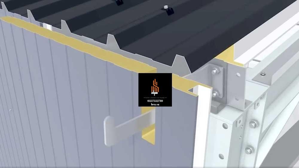 بينما نركز على الأسقف، لا يمكن إغفال الجدران لأنها تتكامل مع السقف. طريقة تركيب أسقف ساندوتش بانل تختلف قليلًا عن الجدران في نظام التعشيق. في الجدران، غالبًا ما يكون التثبيت مخفيًا (Concealed Fix) لإعطاء مظهر جمالي، بينما في الأسقف يكون ظاهرًا لسهولة الصيانة.